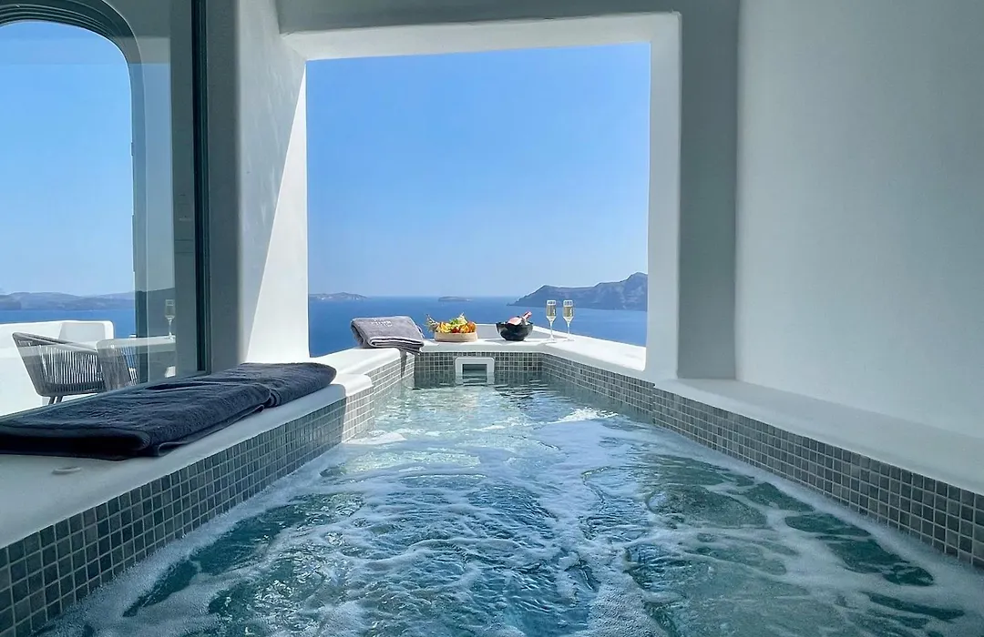 Um destaque do Ether Suites Oia para os hóspedes é a presença de secador de cabelo, roupões e lençóis de banho na casa de banho. Casa de banho separada e chuveiro também podem ser encontrados.
